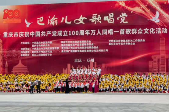 据悉,“巴渝儿女歌唱党”万人同唱一首歌群众文化活动由中共重庆市委宣传部、重庆市文化和旅游发展委员会、中共重庆市委直属机关工委、重庆市教育委员会、重庆市国有资产监督管理委员会、重庆市文学艺术界联合会主办,重庆市群众艺术馆及相关区县党委宣传部承办,是重庆市庆祝中国共产党成立100周年重点文化活动之一。