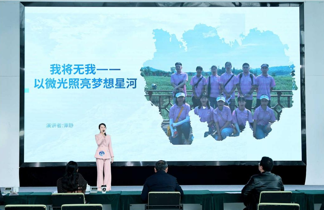 比赛中,谭静老师以《我将无我,以微光点亮梦想星河》为题,通过“小我·扎根”“大我·传承”“无我·超越”三重维度展开演讲。她以“小我”为起点,深情讲述学生放弃城市高薪、扎根乡村幼教的真实故事,展现“用萤火微光照亮山区孩子童年”的动人选择;继而以“大我”为脉络,解析学校“卓越乡村幼师培养计划”如何通过课程改革、实践浸润培育“下得去、留得住、教得好”的幼教人才;最终升华至“无我”境界,回溯学校110年校史中教育先辈“捧着一颗心来,不带半根草去”的奉献精神,号召新时代青年将个人理想融入国家教育事业发展洪流。