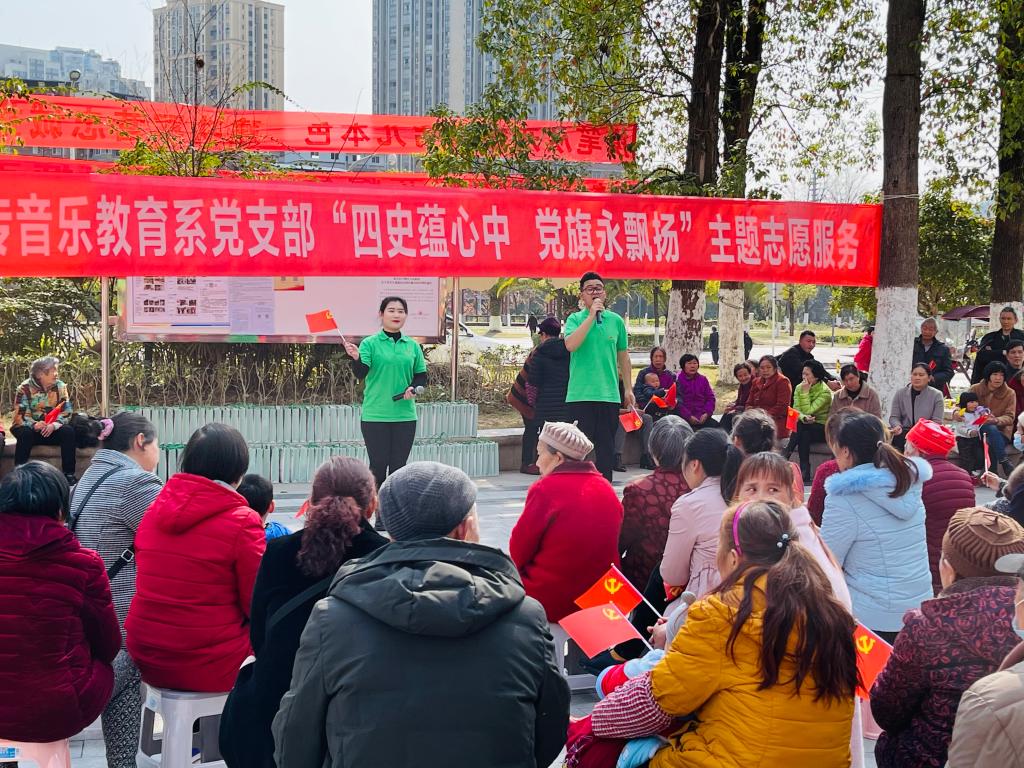 3月4日,音乐教育系党支部组织开展“四史蕴心中 党旗永飘扬” 主题志愿者活动,全体党员、入党积极分子及学生代表参加。