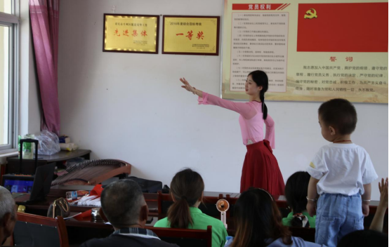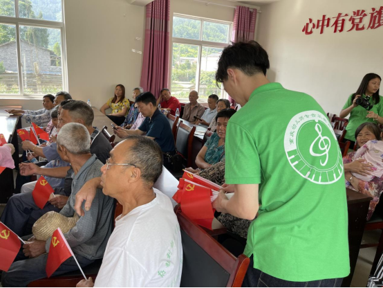 活动在金沙村居民广场拉开序幕,10余名党员代表面对党旗重温入党誓词。活动中,音乐教育系党支部为村民带去歌曲演唱《我和我的祖国》、手风琴演奏《沂蒙颂》、舞蹈《穿越时空的思念》、合唱《没有共产党就没有新中国》等形式的文艺演出,丰富了村民乡村生活。