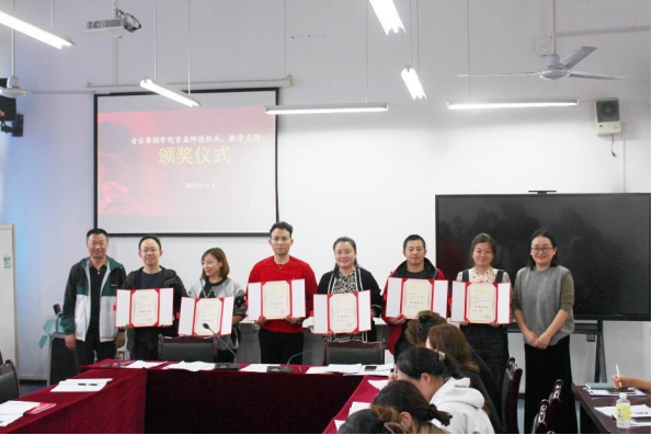 学习会上,还为荣获2022年度学院“师德标兵”、“教学名师”的老师颁发了荣誉证书,为学院学术示范岗的6名科研引领老师颁发了聘书。