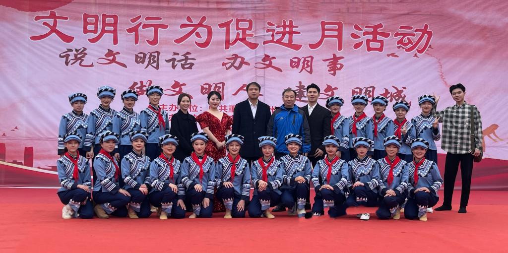 应开州区铁桥镇人民政府邀请,音乐舞蹈学院部分党员教师及学生参与了由开州区委宣传部主办、铁桥镇人民政府承办的“文明行为促进月”盛会,本活动于3月8日在铁桥镇金沙村金玺广场举行。