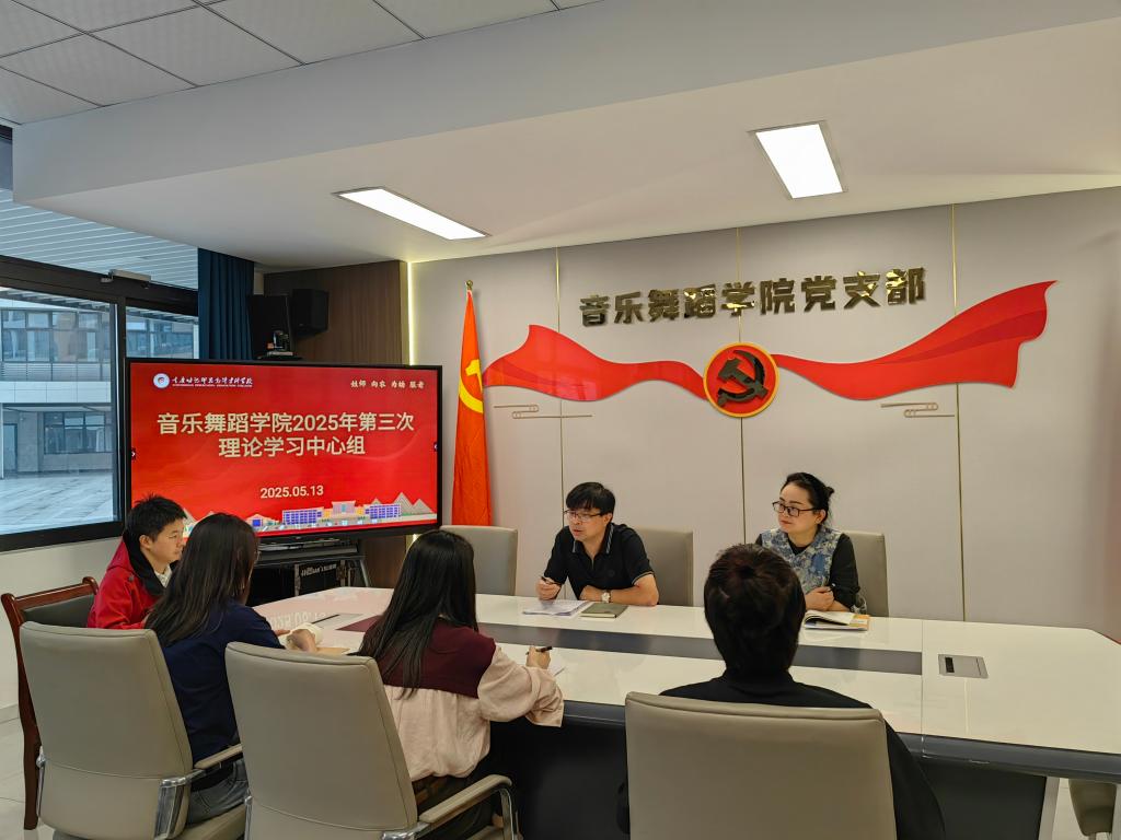5月13日,音乐舞蹈学院党支部在党员活动室举行了2025年第三次理论学习中心组学习。本次学习由党支部书记赵洪斌主持,科级以上干部、支委委员参加了此次学习活动。