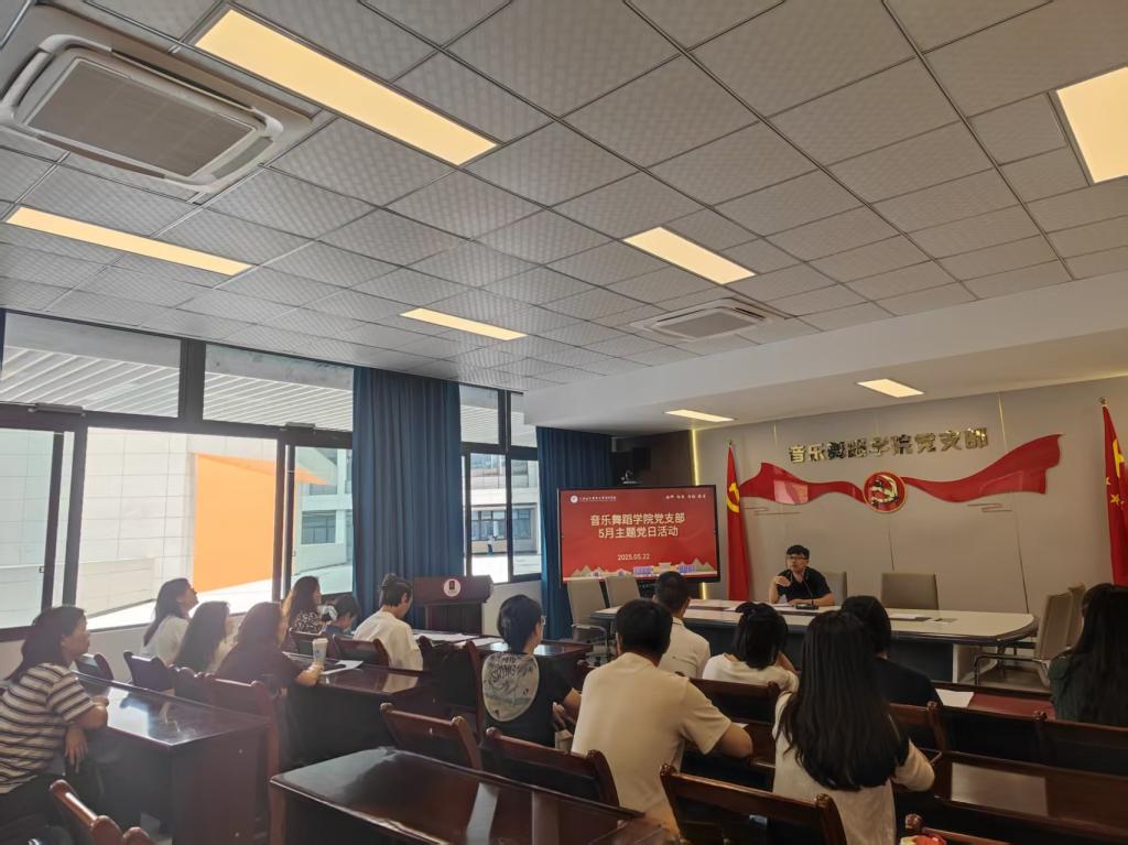 为深入推进全面从严治党,强化党员干部作风建设,5月22日下午,音乐舞蹈学院党支部在党员活动室组织开展“扎实开展作风建设 深入贯彻中央八项规定精神”主题党日活动。党支部书记赵洪斌主持活动,全体党员参加。