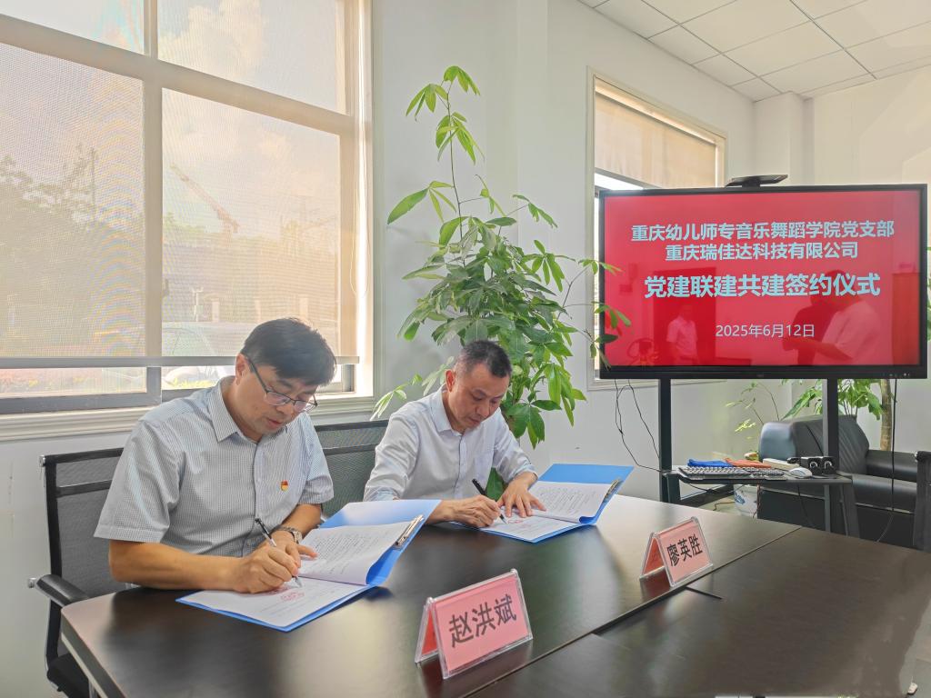 6月12日,重庆幼儿师专音乐舞蹈学院党支部与国家级高新技术企业重庆瑞佳达科技有限公司,在瑞佳达公司正式签署党建联建共建协议。双方以高质量党建为引领,深度融合高校艺术教育资源与前沿数字科技优势,共同探索“科技+艺术”赋能地方文化与产业发展的创新路径,为重庆文化强市与智造重镇建设注入新动能。