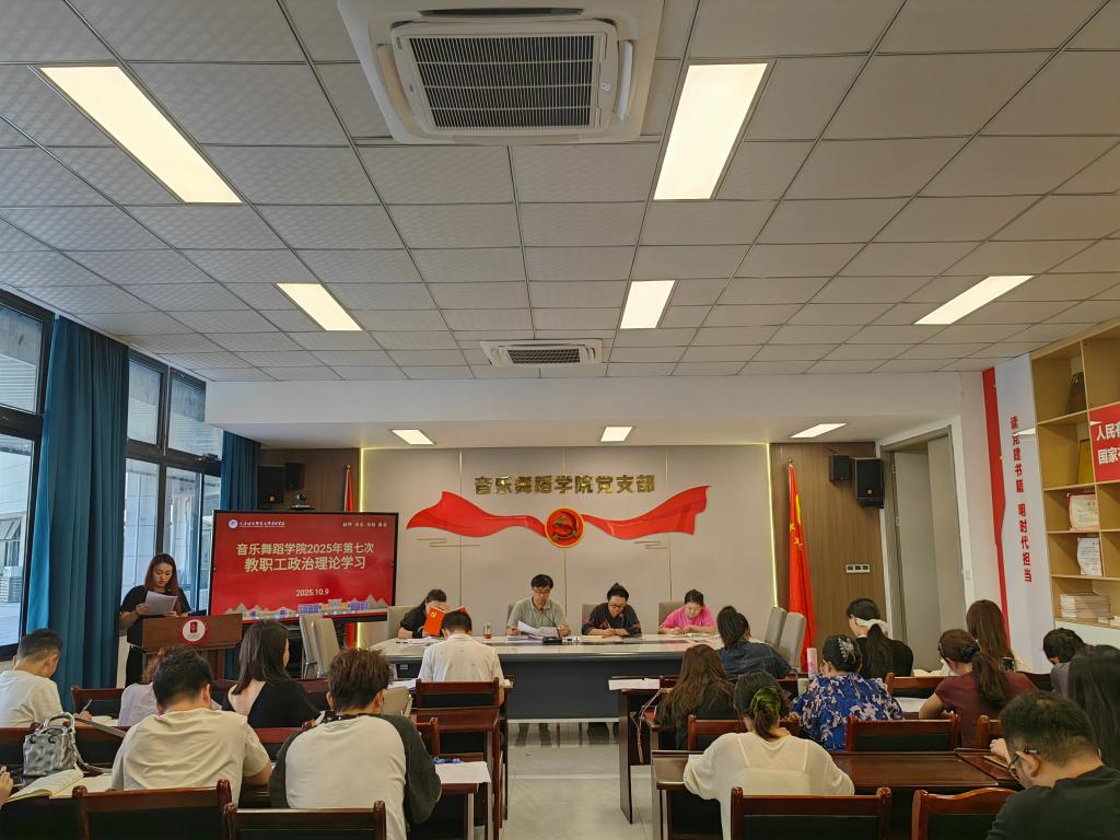 为持续深化理论武装,筑牢教职工思想根基,2025年10月9日下午,音乐舞蹈学院在党员活动室组织召开了本年度第七次教职工政治理论学习会。学习会由学院党支部书记赵洪斌同志主持,全体教职工参加。