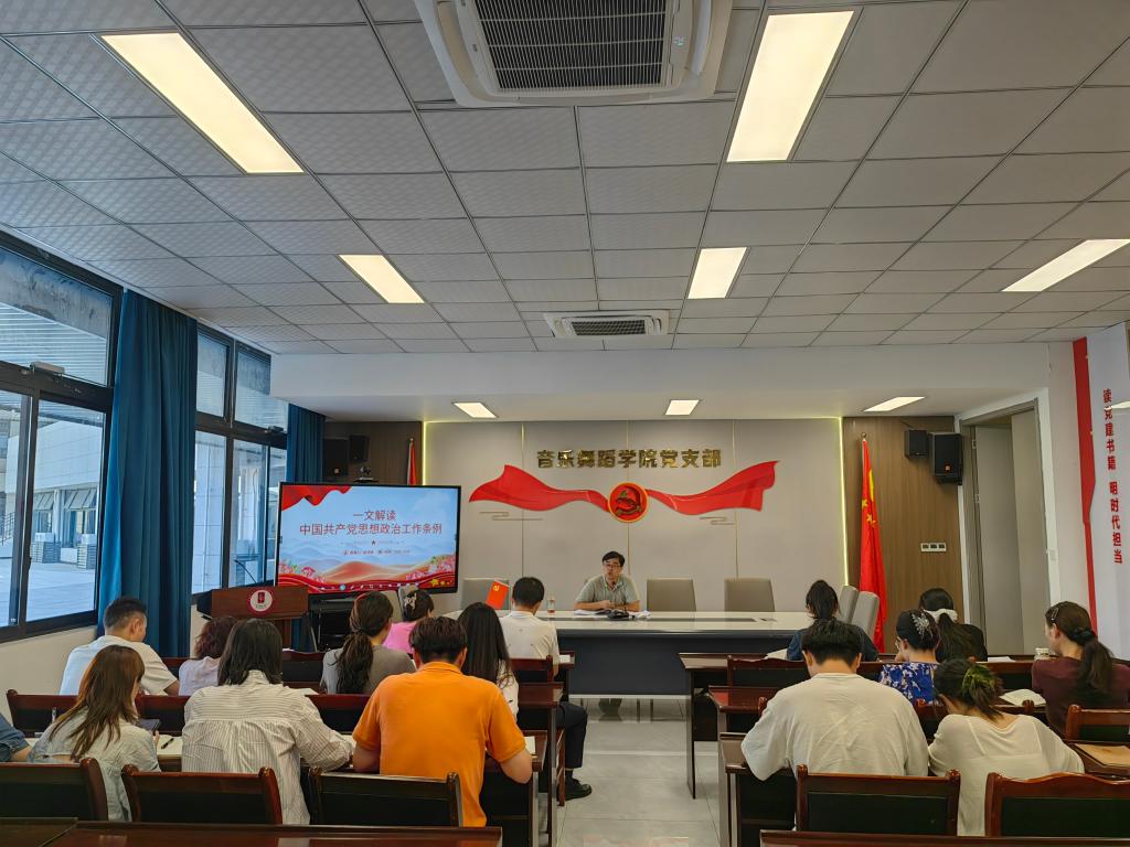 2025年10月9日,音乐舞蹈学院党员活动室内气氛庄重热烈,党支部书记赵洪斌同志以“一文解读《中国共产党思想政治工作条例》”为主题,为全体党员讲授了一堂深刻而富有指导意义的专题党课。