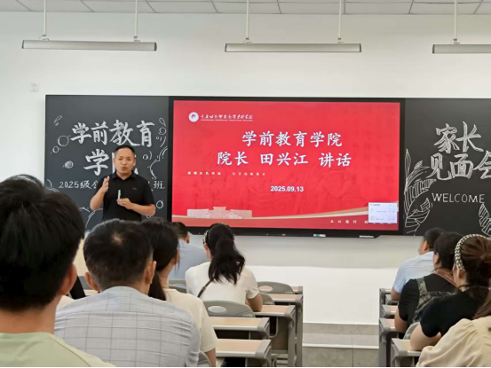下午2时,为促进家校沟通、共同助力学生成长,学院组织召开了“手牵手,赴未来”主题家长会。学院党总支书记黄佐川、副院长(主持工作)田兴江出席家长会,辅导员代表郝连笑老师主持,60余名家长代表出席会议。黄佐川书记从学校历史、学院底蕴及学生管理理念等方面与家长进行分享,并就学生发展提出重视学科学习、强化专业技能、培养兴趣爱好、投入应用实践四点倡议。田兴江副院长(主持工作)介绍了学院的办学理念、师资力量、硬件设施与取得的成绩,欢迎家长积极参与学院建设,共同推动幼儿教育发展。家长们认真聆听,并就关心问题与教师深入交流。
