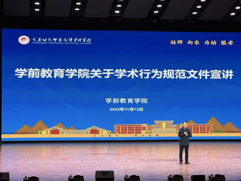 为服务国家学前教育高质量发展战略,系统推进学院科研体系建设,提升师生学术素养与科研能力,2025年11月13日下午,学前教育学院在小湾校区学生活动中心成功举办2025年秋季学期第二次科研与学术活动。本次活动包含专题讲座和学术规范学习两个环节,学院全体师生齐聚一堂,共研学前教育课程创新与学术发展路径。