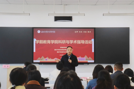 为推动学前教育学院、重庆市教育科研实验基地、重庆市学前教育教师教学创新团队教师科研素养,提升科研能力,加强学术研究氛围,产出科研成果,2025年12月13日,学前教育学院成功举办2025年秋季学期第三次科研与学术活动。本次活动特邀西南大学、重庆文理学院、重庆三峡学院等高校的六位知名专家学者莅临指导,围绕质性研究方法、课题设计与论文撰写等内容展开系统培训与分组指导,学院及重庆市教育科研实验基地、重庆市学前教育教师教学创新团队的全体教师、学前教育公费师范生代表共计五十余人参加。