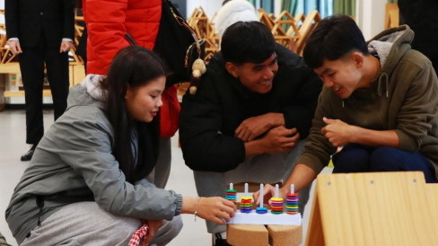 (老挝学生操作幼儿园教玩具)