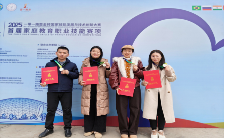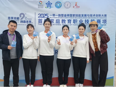2025年“一带一路”暨金砖国家技能发展与技术创新大赛第二届家庭服务创新创业赛项与首届家庭教育职业技能赛项近日相继落下帷幕。学前教育学院师生积极参与、表现出色,在两项赛事中均取得优异成绩。在第二届家庭服务创新创业赛项中,由我院学生杨雪、綦仙、白雯、梁靖组成的代表队凭借突出的创新方案与扎实的实操能力,荣获高校组二等奖(银牌),指导教师徐浩、丘静获“优秀指导教师”称号。与此同时,在首届家庭教育职业技能赛项中,我院教师赵展靖、瞿鸿艳、付华、徐浩组成的代表队荣获教师组二等奖(银牌),由学生彭佳怡、刘红芩、冯甜甜、蒋馨月组成的代表队荣获高校组三等奖(铜牌),学校获颁“优秀组织奖”。