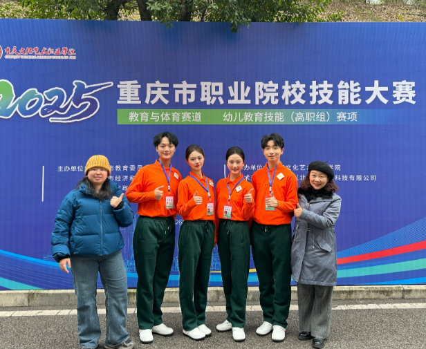 近日,2025年重庆市职业院校技能大赛教育与体育赛道高职组幼儿教育技能赛项圆满落幕。我院参赛团队凭借扎实的专业功底、默契的团队协作与创新的教育实践,从众多参赛队伍中脱颖而出,成功摘得金奖,为学院赢得了崇高荣誉。