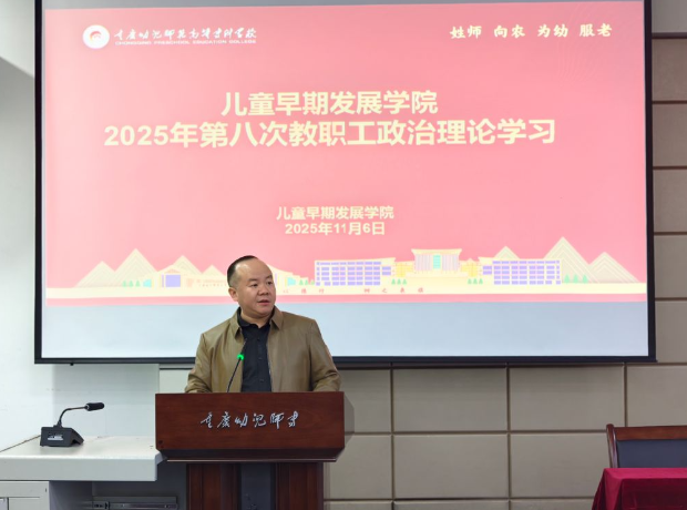 11月6日14:00,儿童早期发展学院在塘坊仁爱楼一楼宣讲大厅召开专题学习会,全院教职工全员参会,学院党总支书记管升主持会议,专职辅导员闫飞全程记录。本次学习紧扣“筑牢思想根基,践行育人使命”主题,围绕政治理论武装、重要会议文件解读、统战工作落实、师德师风建设四大核心维度展开,系统涵盖7个专题12 项具体内容,通过“领学解读+视频教学+案例警示”相结合的方式,实现理论认知与办学实践的深度衔接。