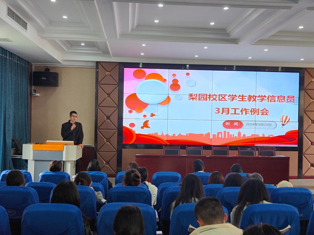 为加强对教学工作的信息反馈,及时全面了解和掌握全院教学运行基本情况,进一步完善教学质量与监控体系,充分发挥学生参与管理教学和自我管理、自我教育的主体作用。儿童早期发展学院学生教学信息站于2024年3月25日在梨园校区学术报告厅2(408)召开了工作会议。学院副院长盖业明,学院教科办副主任谭雪娇、陶孟壕老师以及学院梨园校区(校内)学生教学信息站所有成员参加。