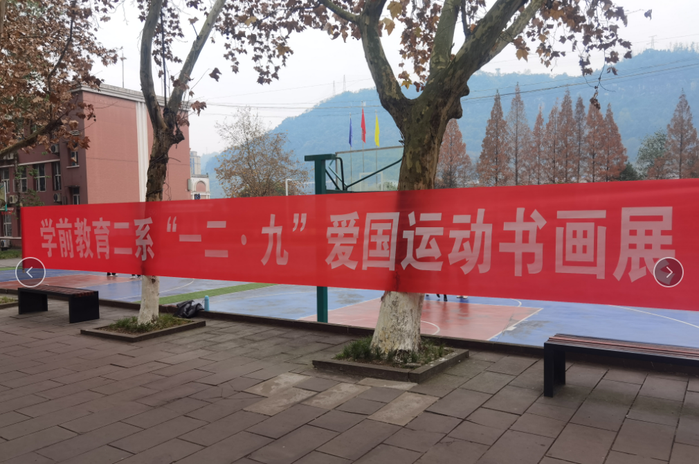 为展示学生的基本功,提升学生专业技能,弘扬中国传统文化,提高学生爱国热情。12月9日,学前教育二系在校园大道上开展了“一二·九”爱国运动书·画展。梨园校区、沙河校区每个班学生均提交了相关作品,作品类型十分丰富,有软笔书法、硬笔书法、情景画、水墨画、简笔画等,经过初赛、复赛层层选拔,评委最终评选出了380余份获奖作品。展览过程中同学们纷纷驻足观摩鉴赏。此次活动呈现出学前教育二系全体师生“爱国心、报国情、强国志”的浓厚情怀。