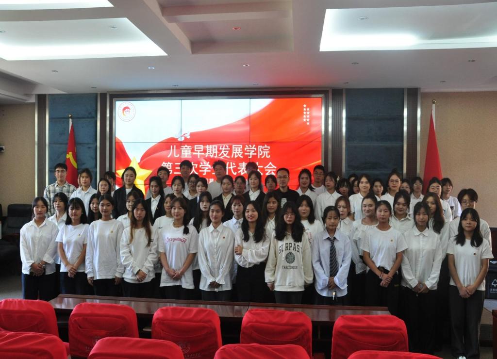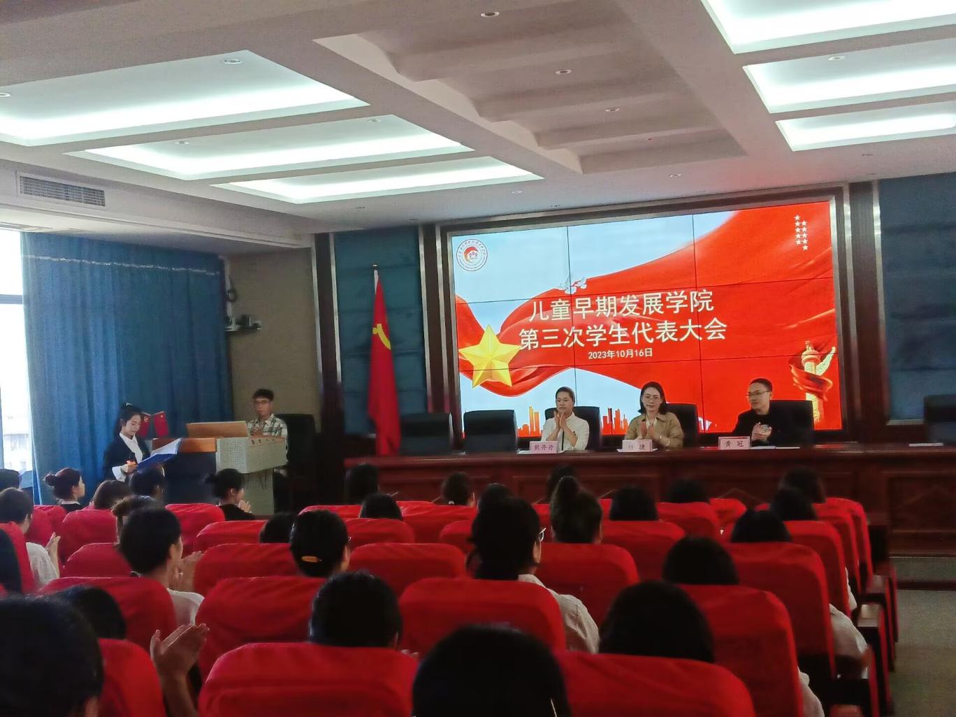10月16日,儿童早期发展学院第三次学生代表大会在梨园校区418教室顺利召开。学院行政负责人任捷同志出席开幕式并讲话,校团委梨园校区负责人熊丹丹老师,学院学工办、团总支负责人黄冠老师出席开幕式,48名学生代表全程参加会议。大会开幕式由段声媛同学主持。