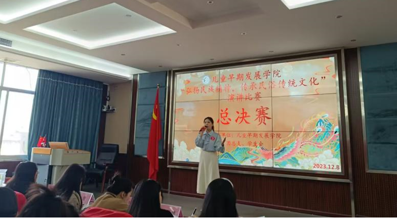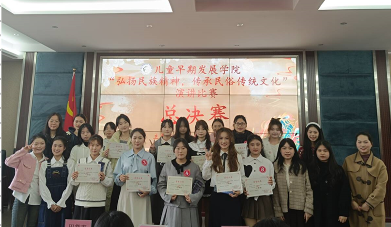 为进一步增强我院学生的民族意识,传承和发扬中华民族优秀传统文化,增强民族传统文化自信,儿童早期发展学院于2023年12月8日开展了“弘扬民族精神,传承民俗传统文化”演讲比赛活动。校团委熊丹丹、党政办张倩等相关老师应邀担任评委。