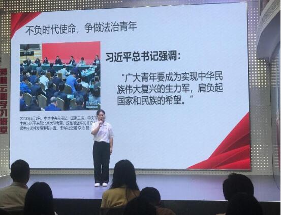 在比赛中,杨清同学以清晰的思路、严密的逻辑和精准的表达,赢得了评委和观众的一致好评。她不仅深入阐述了法治青年应该具备的品质和能力,还结合自己的亲身经历,分享了如何在日常生活中践行法治精神,为观众上了一堂生动的法治课。