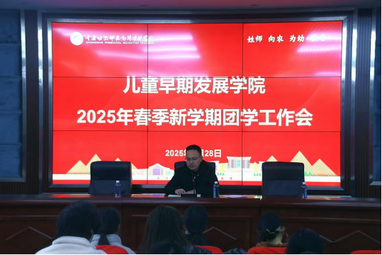 春风送暖,万物复苏。2月28日上午,儿童早期发展学院2025年春季学期团学工作会在梨园校区418会议室召开。学院团总支负责人黄冠老师出席会议,团学各部门负责人、学生骨干共计60余人参会。会议由院学生会执行主席杨佳莉主持,为新学期团学工作锚定方向、凝聚共识。