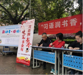 4月23日,党建读书系列活动正式启幕,图书馆党支部分别在塘坊校区、梨园校区开展“习语润书香,硬笔书金句”主题活动。活动以即兴参与“硬笔书写+金句朗读”的方式进行,全校师生积极响应,近千名读者参与到“习语金句,硬笔书写”书签誊抄和“诵读金句,感悟伟力”深情朗读活动中。广大师生在学习习近平总书记金句的过程中,将理论宣讲同传统书法进行创新融合,在感悟思想伟力的同时,做中华优秀传统文化的传承者和弘扬者,汲取奋进力量。
