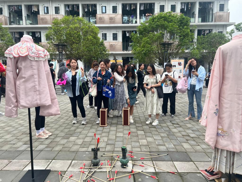 该活动凭借其独特的创意策划与精心组织,成功打造出一场融知识性、趣味性与观赏性于一体的传统文化盛宴。活动共计六个项目:戏曲文化展示、汉服展示、盔甲展示、武器展示、射箭趣味活动、投壶趣味活动。其中戏曲文化展示与巴渝(三峡)乡音文化博士工作站联合组织。活动期间,现场犹如时光隧道,将师生们带入了悠久灿烂的华夏文明之中,吸引了千名师生参加。