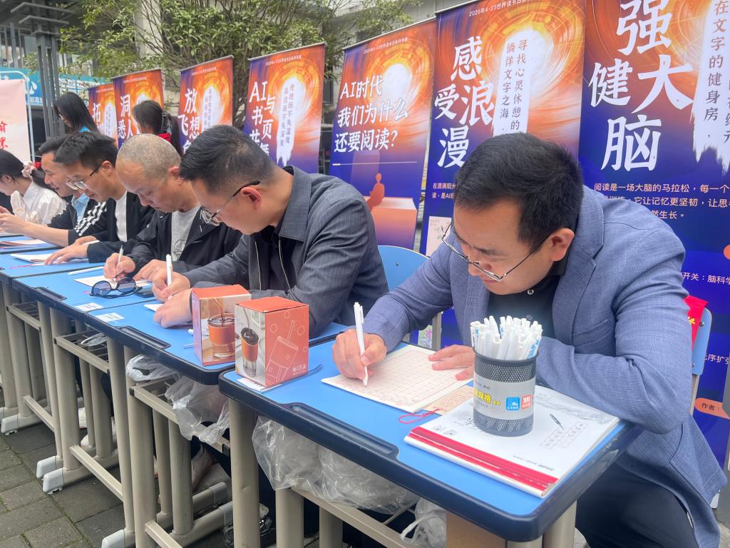 该活动以“硬笔书写+金句朗读”即兴参与的方式进行,近千名读者参与到“习语金句,经典名著”的书签誊抄和“诵读金句,感悟伟力”的深情朗读中,朗朗诵读声回荡在校园大道,让在场师生深刻感受到中华经典文化的独特魅力。活动得到全校师生的积极回应,现场气氛热烈,翰墨飘香。