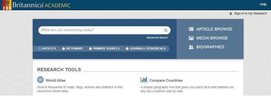 大英百科学术版(Britannica Academic):内容涵盖EBSCO期刊杂志摘选、大不列颠百科全书、电子原版书、韦氏辞典和词库、时事新闻、名人名言、世界数据分析、视频会集、多媒体资料、主题数据库、个人工作空间等。浏览功能包括:按字母顺序浏览、主题浏览、世界地图浏览、年鉴浏览和时间(大事纪年表)浏览等多种途径。作为全科数据库,大英百科学术版涵盖综合领域与不同科目,无需切换不同数据库, 一站式访问便可轻松获取需要查找的内容。