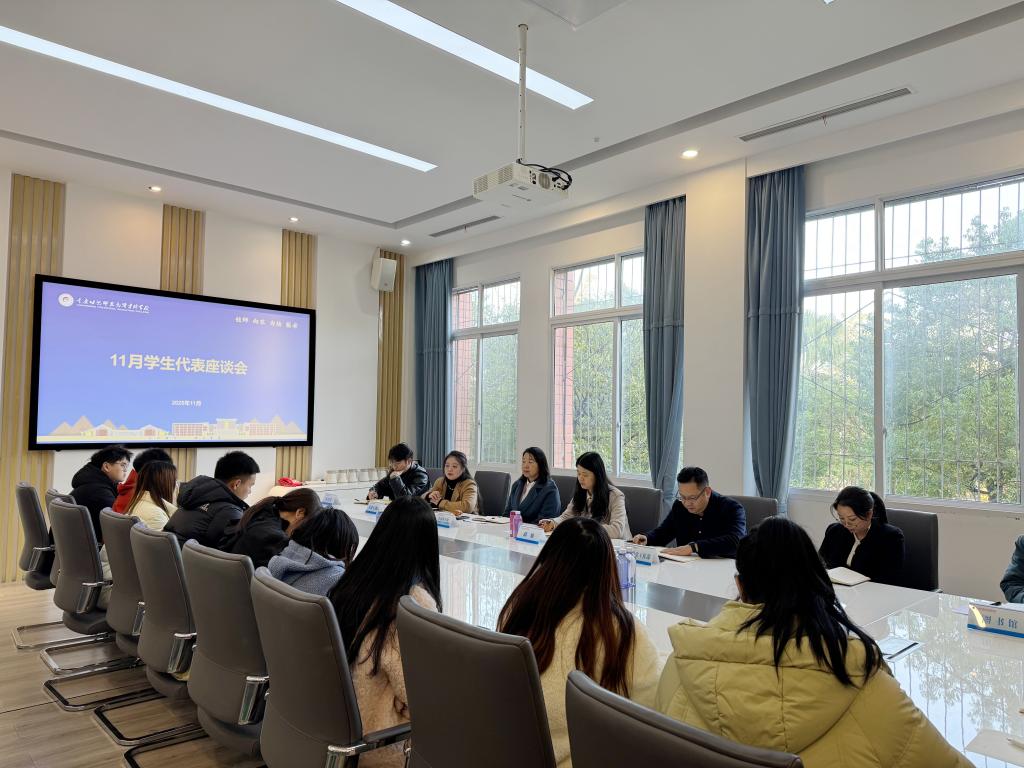 2025年11月25日,我校在塘坊校区博学楼101教室召开11月份学生代表座谈会。党委委员、副校长薛娟出席会议并讲话,党委学生工作部、党委保卫部、基建后勤处、图书馆负责人,教务处及校团委相关科室负责人共同参与,与塘坊校区学生代表面对面交流,倾听诉求、回应关切。
