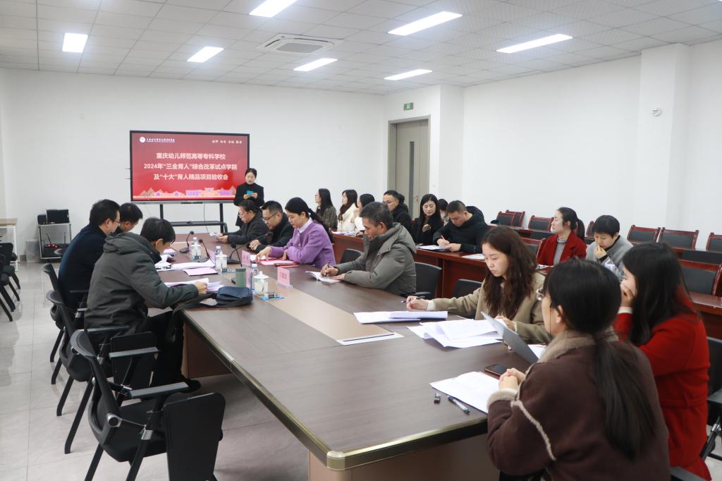 为深化立德树人,聚力内涵发展,2025年12月18日,我校在小湾校区2312会议室举行“三全育人”综合改革试点学院及“十大”育人精品项目结项验收会议。校党委委员、副校长薛娟出席会议并致辞。会议特邀重庆三峡学院党委学生工作部(学生处)部长任江林,重庆三峡职业学院党委学生工作部(学生处)部长陶毅以及重庆三峡医药高等专科学校党委学生工作部(学生处)副部长李春光组成专家团进行评审,项目全体成员及党委学生工作部相关人员参与会议。