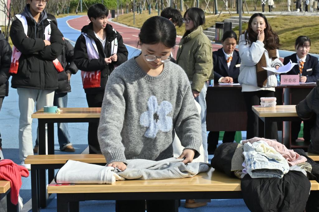 活动设置“手工缝纫基础技能赛”与“衣物速叠”个人挑战赛两个项目。在缝纫赛环节,选手需在规定时间内完成指定布料破洞的修补任务,重点考察针脚均匀度、缝合牢固性及整体美观度;衣物速叠赛则要求参赛者在最短时间内将自备的T恤、衬衫、长裤等常见衣物折叠整齐,评判标准包括折叠规范性、效率与成品形态。比赛过程中,选手们专注操作、动作规范,展现出良好的动手能力和生活素养。赛事由经验丰富的公寓管理人员组成评审组,依据操作流程、完成质量与时效进行综合打分,确保评选公平、公正、专业。
