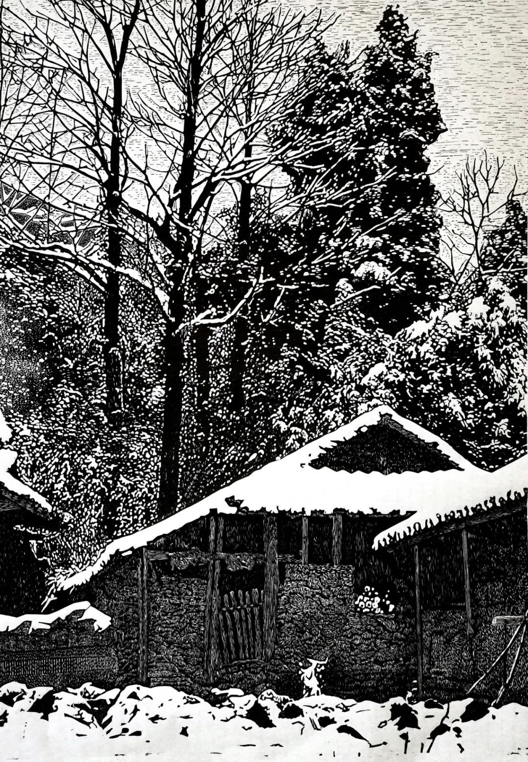 版画《瑞雪迎春》 尺寸:70cm*90cm 作者:付云