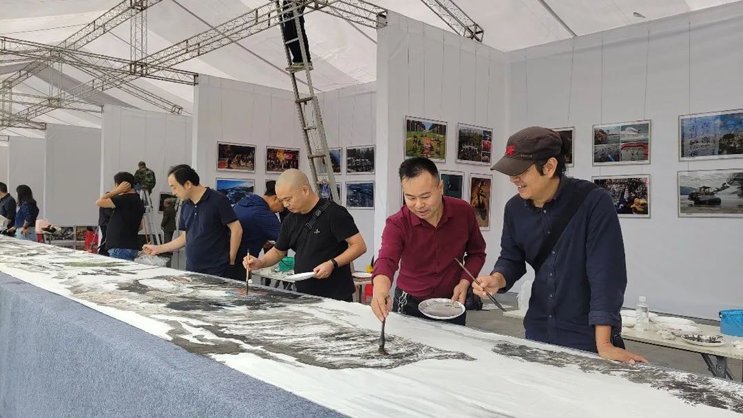 9月27日,云阳县第二十二届“锦绣云阳”文化艺术展在两江广场开展,此次活动由重庆市文学艺术界联合会指导,“万达开云”四地共同举办。我院任有志、胡华、付云、腾达四位老师受邀参加此次展览活动,在现场与四地其他文艺工作者共同完成了“山水家园·环湖揽胜图”百米长卷的绘画。