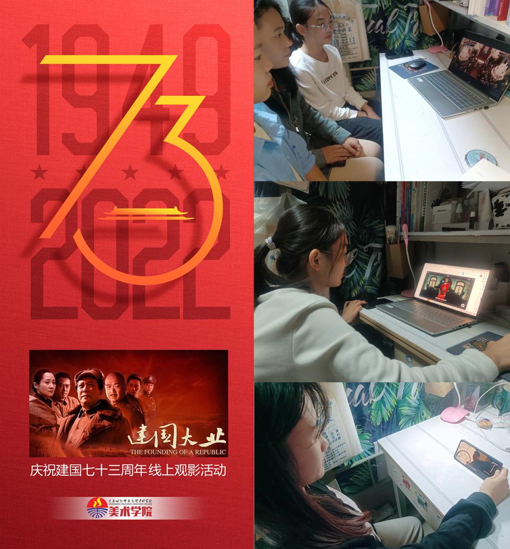 10月1日,美术学院开展庆祝建国七十三周年观影活动,线上观影《建国大业》,引导学生坚定不移听党话、跟党走,努力成长为堪当民族复兴重任的时代新人。