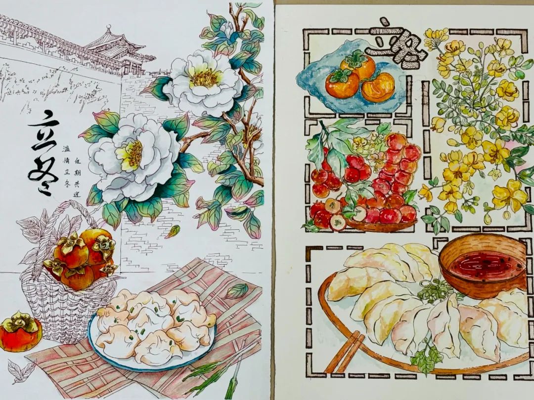 本次活动以“温情立冬·佳期共迎”为主题,促进同学们更深入了解中国二十四节气传统文化,活动分为“致佳节”和“品佳肴”两项,根据学院专业特色,共收到120名同学的绘画、书法、手工等创作,一幅幅画作创意独特,造型精美,传递真诚和积极的生活态度,同学们在制作的过程中了解了中国传统风俗文化。