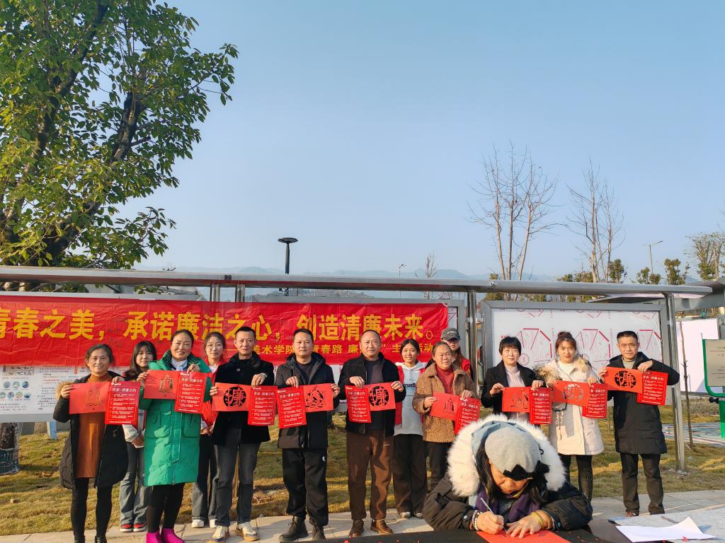 为贯彻落实“青春倡廉”行动,传播廉洁清正的价值观念,以家风带民风、促党风、清正风,进一步营造风清气正的社区文化氛围,12月25日下午,美术学院“绘美”志愿者协会“青年 清廉”宣讲团在万州区天城镇诗仙社区组织开展了“走进社区,廉洁互动”廉洁知识宣传暨社区艺术活动。
