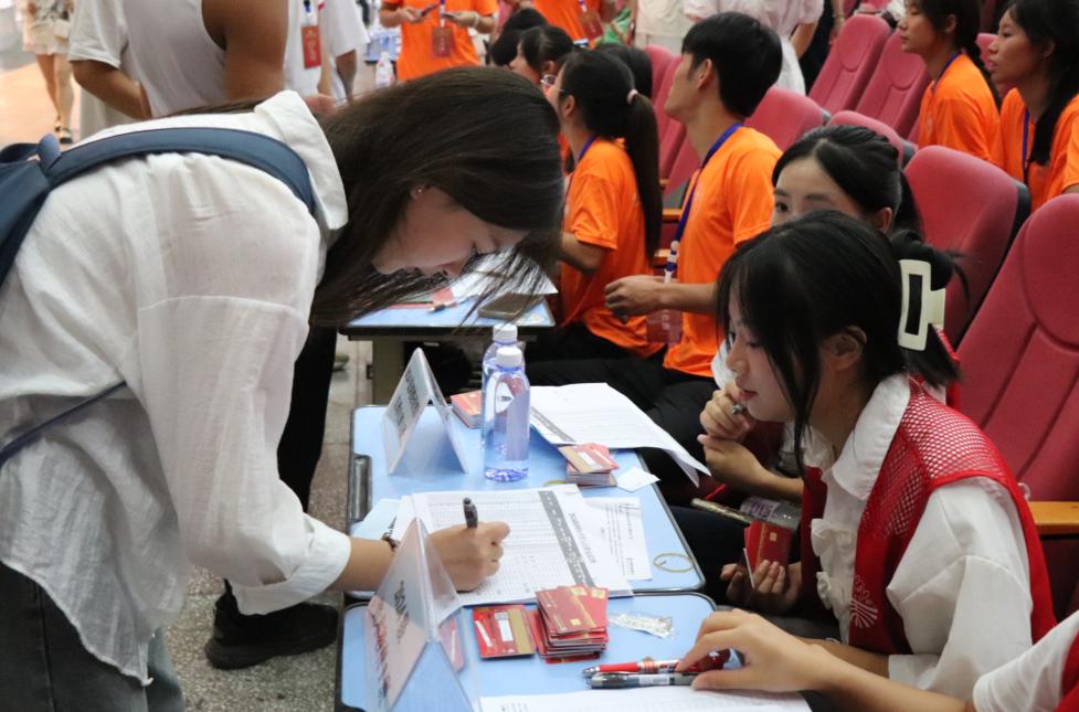 报到现场,学生活动中心内人声鼎沸,负责注册登记的老师与学生志愿者们以饱满的热情迎接每一位新生的到来。他们耐心地帮助新生完成信息核对、校园卡领取等手续,并针对新生提出的各种问题给予详细解答,学院领导也深入迎新工作一线,与学生和家长进行了深入交流。