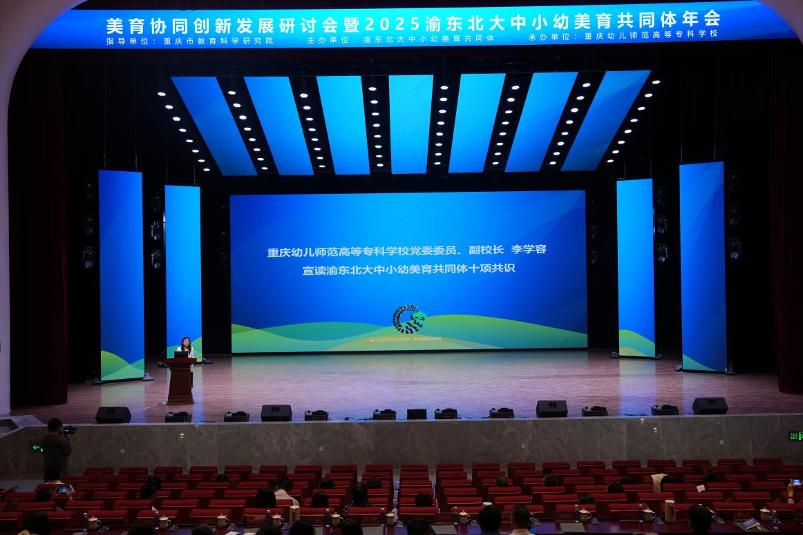 闭幕式上,重庆幼儿师范高等专科学校党委委员、副校长李学容庄重宣读了渝东北大中小幼美育共同体十项共识。这些共识凝聚了共同体成员单位的智慧,涵盖了美育课程建设、师资培养、资源共享等多个关键领域,为区域内大中小幼美育教育的深度融合与协同发展奠定了坚实基础。