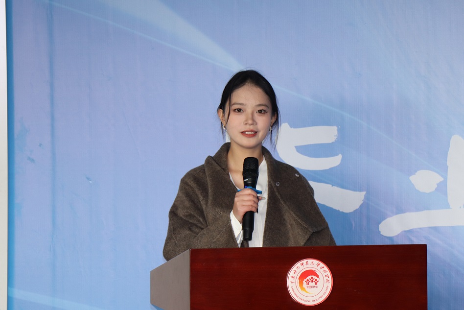 学生代表彭超分享了自己在学习与创作中的感悟。她衷心感谢学院提供的优质创作平台和教师们的悉心指导,表达了对母校的深厚情谊。并表示,将带着大学期间习得的专业能力与坚定的艺术理想,在人生新征程上继续探索。