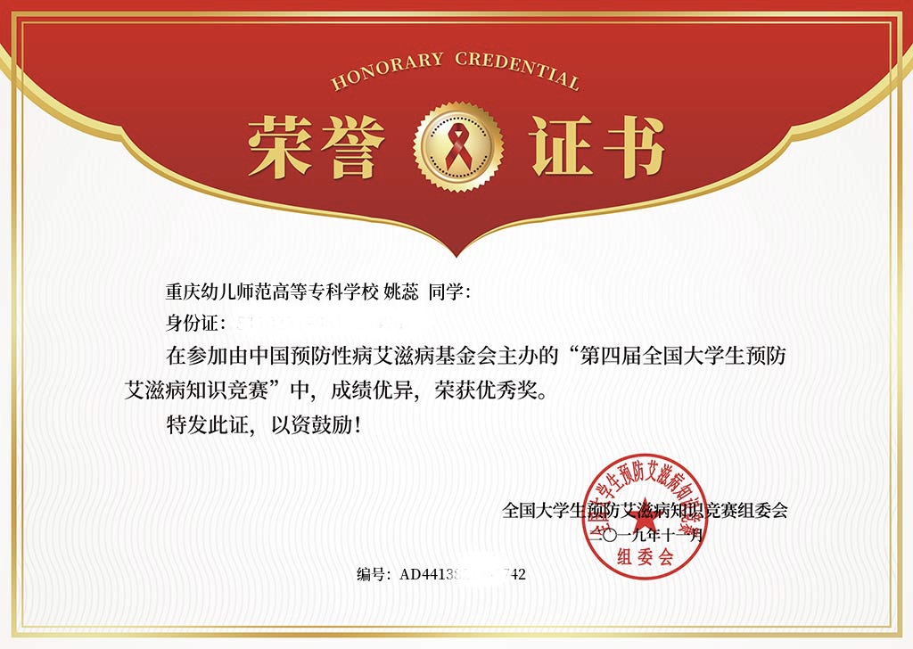 我系姚蕊同学获第四届全国大学生预防艾滋病知识竞赛优秀奖