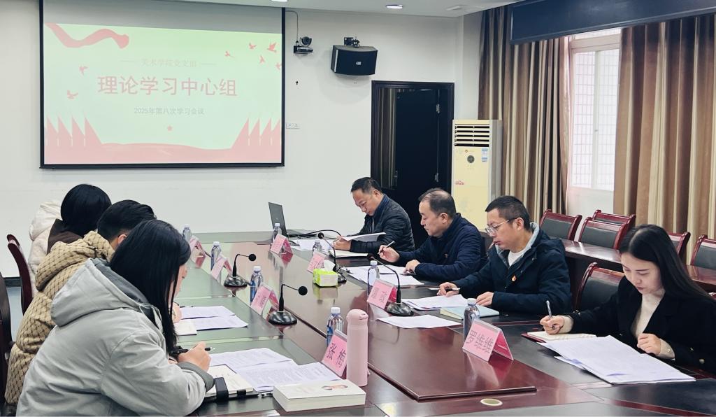 12月9日上午,美术学院党支部在弘艺楼2楼会议室召开了2025年第八次理论学习中心组(扩大)学习会,会议主题“深入学习贯彻二十届四中全会精神 以高质量党建引领美术学院特色发展”。党支部负责人谭政主持,党委书记马文华列席指导,副科级及以上干部、青年培养干部列席旁听。
