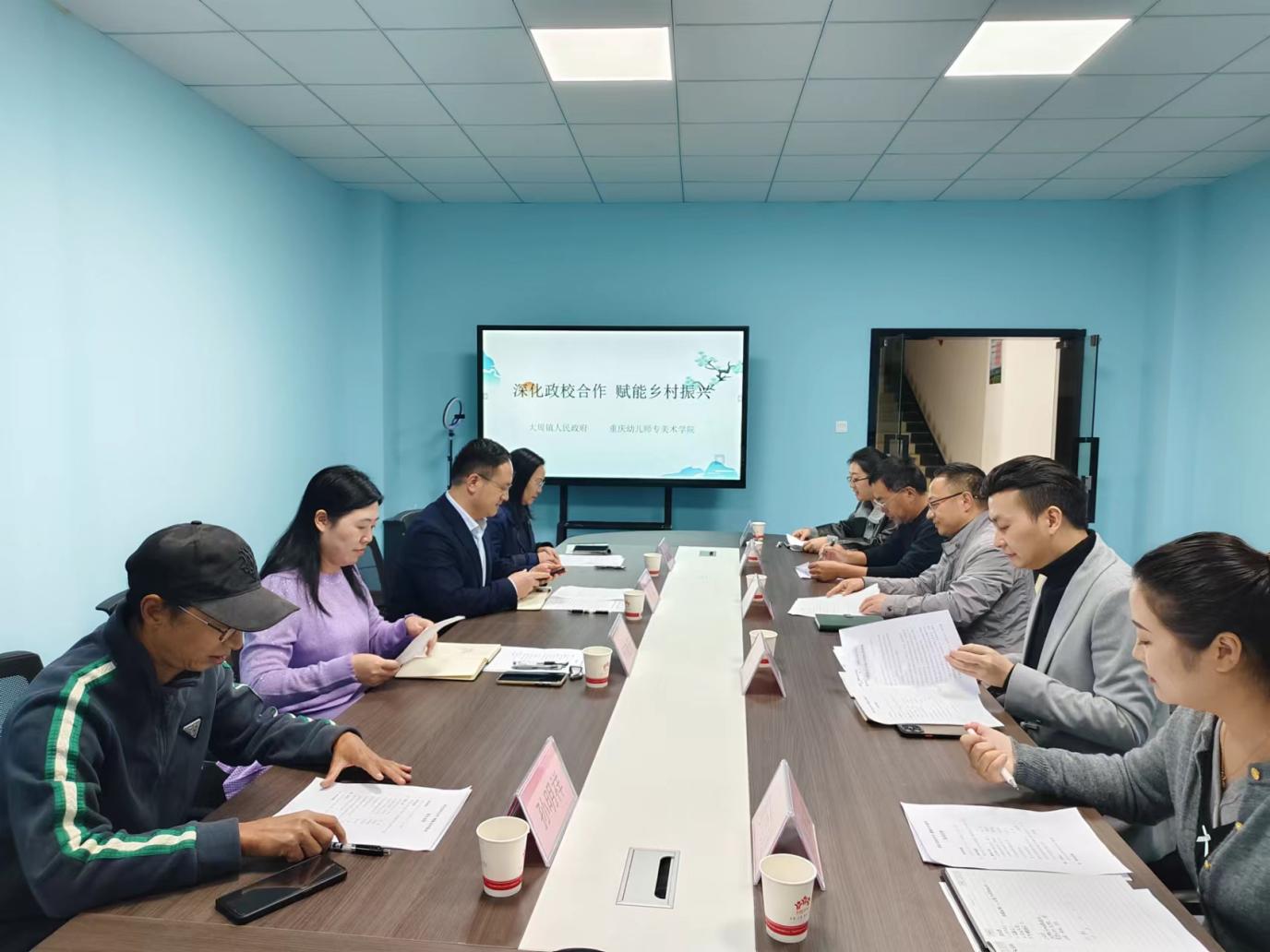 三是共建长效机制,保障合作落地:为避免合作“流于形式”,双方就具体合作模式展开磋商,初步达成“共建实习实训基地”“共创产学研合作项目”的意向——计划在大周镇设立 “重庆幼专美术学院乡村振兴实践基地”,吸纳学生参与乡镇产业实践;同时筹备签订政校合作框架协议,明确合作内容、责任分工、保障措施,推动合作常态化、长效化。