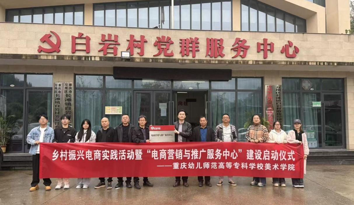 为深入贯彻国家乡村振兴战略,充分发挥高校专业优势赋能地方经济发展,2025 年 11 月 7 日下午,重庆幼儿师范高等专科学校美术学院组织教师与学生代表组成调研团队,赴重庆市万州区长滩镇白岩村开展实地考察与项目合作洽谈,并成功举行 “电商营销与推广服务中心” 启动仪式,标志着校地合作助力乡村特色产业发展迈入实质性阶段。