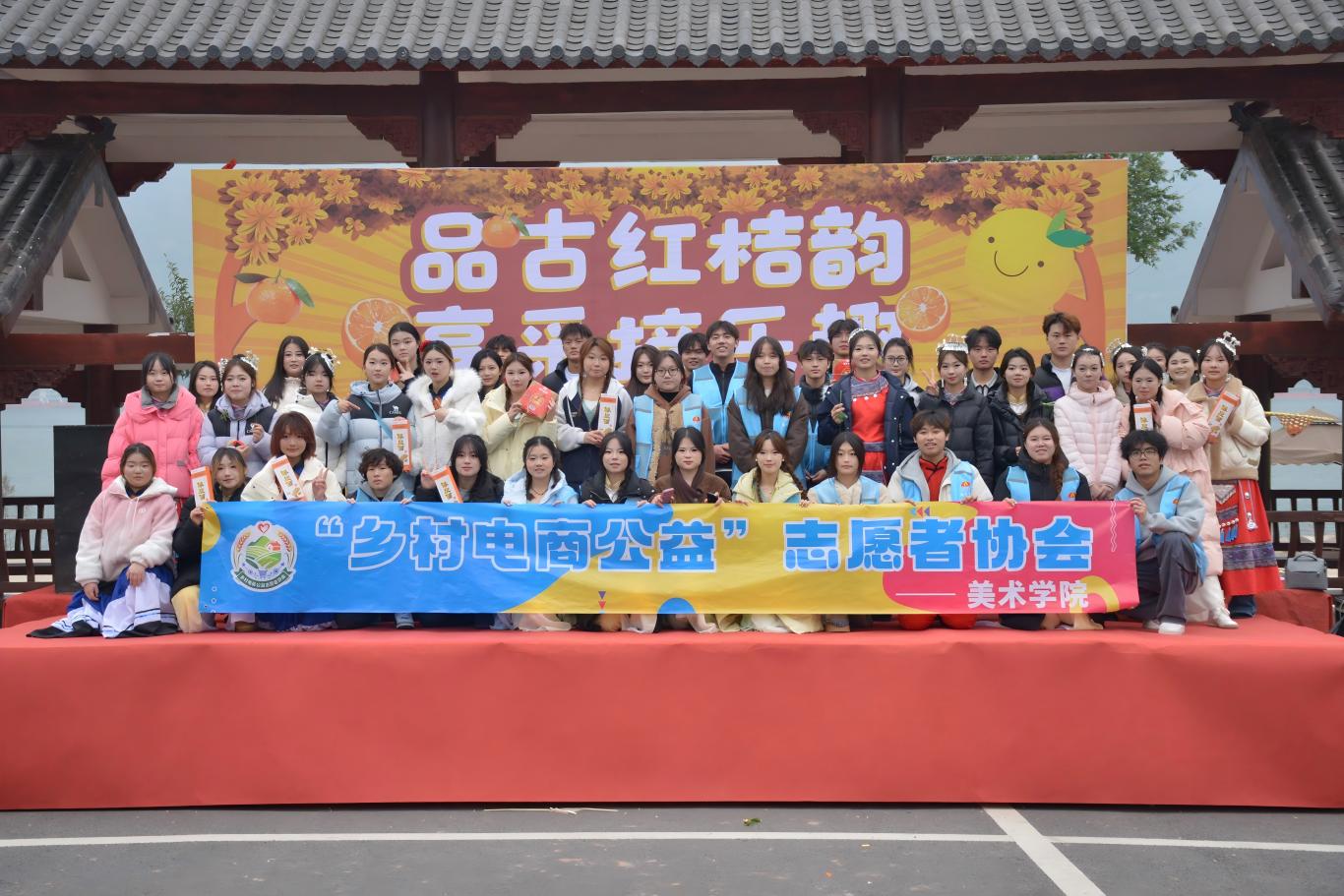2025年12月19日,美术学院乡村电商公益志愿者协会走进重庆市万州区大周镇铺亚印象露营基地,成功参与“品古红桔韵,享采摘乐趣”古红桔采摘节活动。活动以红桔为媒,以公益为桥,不仅让参与者沉浸式体验了丰收的喜悦,更通过电商赋能为当地特色农产品宣传推广注入新活力。