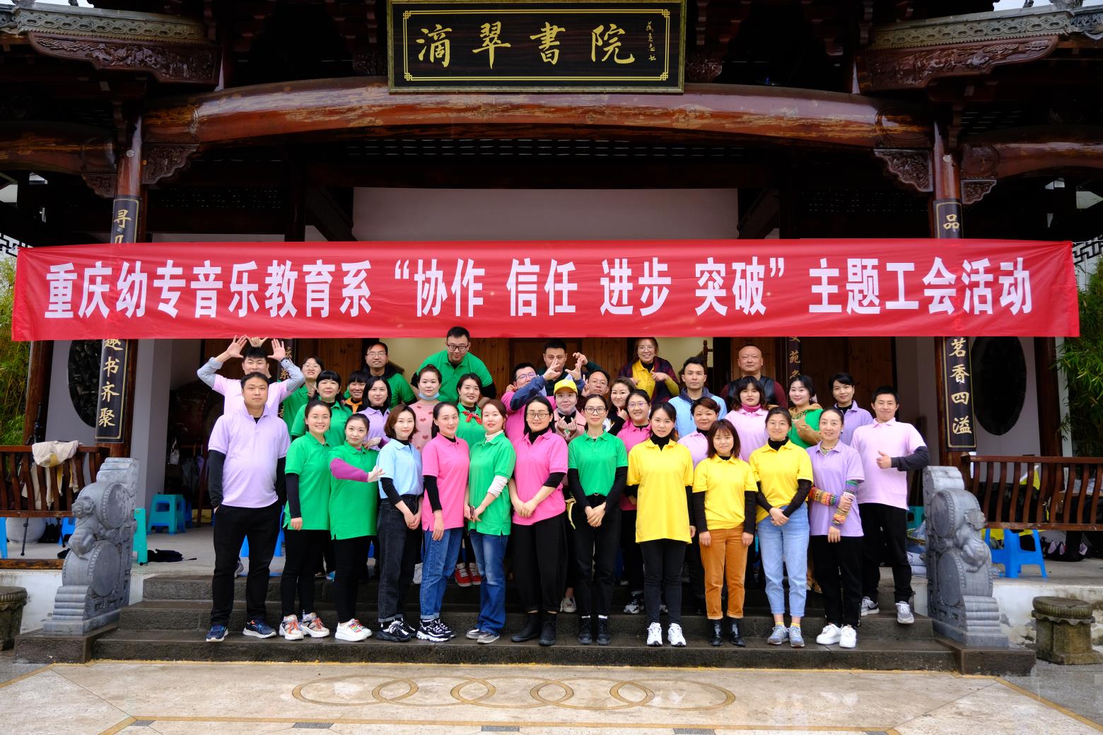 为了调动全系教职工团队的工作热情,激发工作干劲,调节身心健康,进一步增强团队凝聚力,增加归属感和幸福感,提高全员之间的协作精神和集体主义精神,营造和谐幸福环境,适逢建党100周年之际,本工会小组于3.18日在万州区高粱镇素曼庄园开展了“协作信任进步突破”主题团建活动。所有项目将以体能活动为引导,引发出认知活动、情感活动、意志活动和交往活动,有明确的操作过程,全身心的投入,以自己的能力挑战困难,跨越“极限”,激励斗志,激发潜能;方式以分组活动,强调集体合作,在集体中显示个性,创造性地发挥团队能力;获得人生难得的高峰体验。有着“磨练意志、陶冶情操、完善自我、熔炼团队”的深层次内涵。