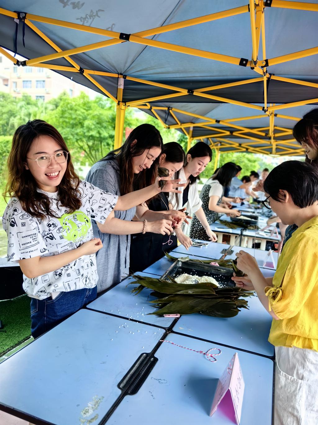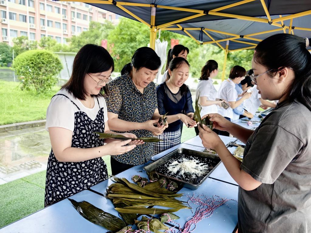 淡淡粽叶香,浓浓校园情。为弘扬中华优秀传统文化,营造欢乐、文明的节日氛围,6月21日,学校工会在塘坊校区篮球场举办了以“浓情端午、粽享欢乐”为主题的教职工包粽子比赛。