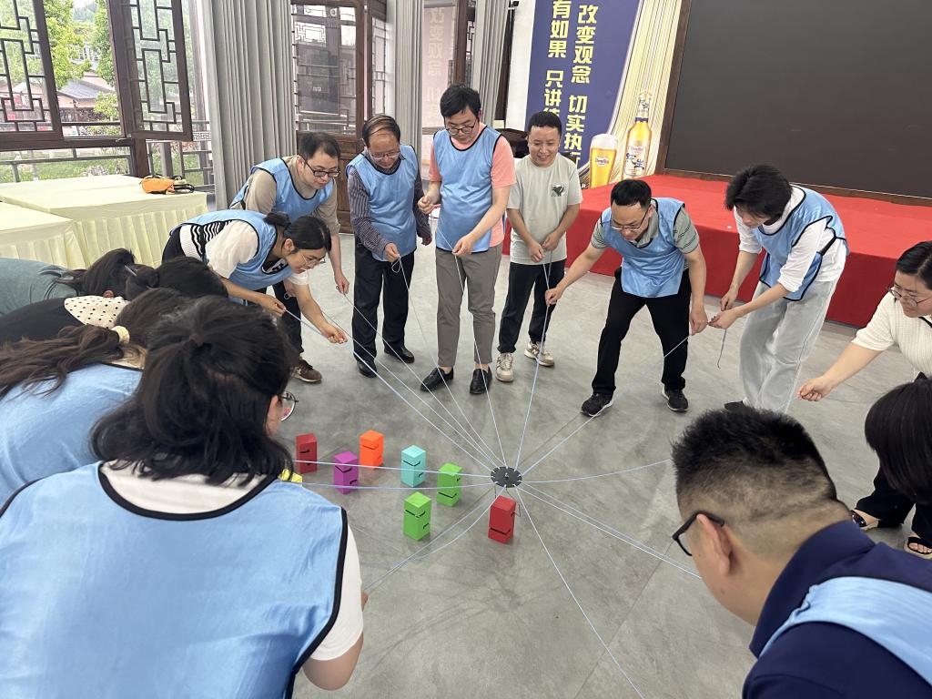 本次活动围绕提升团队凝聚力和创造力展开,在活动教练的带领下,首先进行团队规整、活动身体,打破彼此之间的隔阂,快速融入团队。紧接着,进行了几个有趣的文体项目,如“激情节拍-我们是最棒的团队”“合力筑塔”“杯子舞”等,教职工们个个热情洋溢,精神饱满。