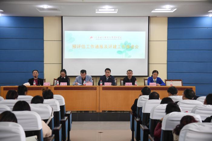 为深入推进学校评建工作开展,全面落实预评估专家提出的反馈意见和建议,部署下一阶段评建整改工作任务,10月31日下午,学校在塘坊校区德馨楼五楼会议室召开学校召开预评估工作通报暨评建工作推进会,全体校领导、教职工参加会议。会议由主持副校长熊毅主持并向全体教职工逐一反馈了专家意见和建议。