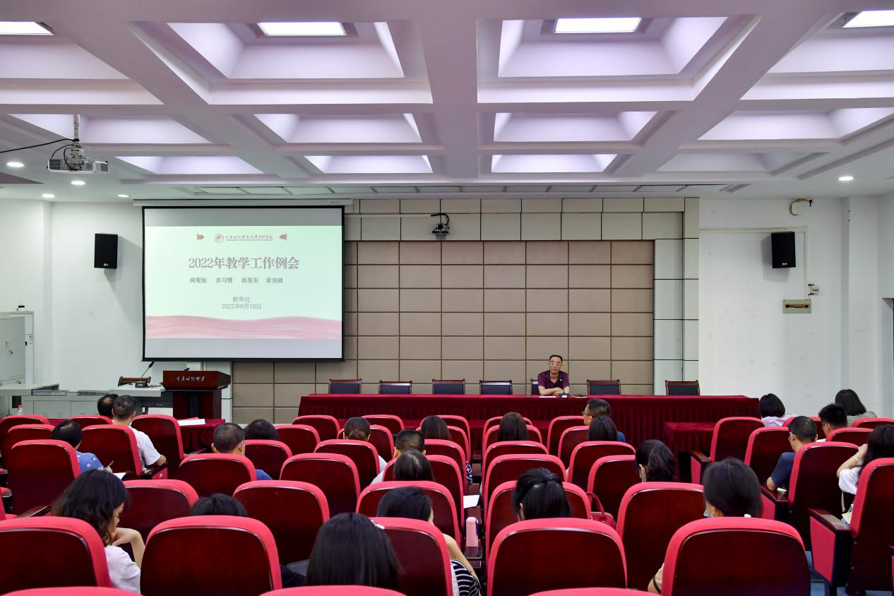 6月10日下午,学校在仁爱楼就业宣讲大厅召开2022年第二次教学工作例会,会议主题为“树规矩·养习惯·抓落实·求突破”。党委委员、副校长熊毅主持会议,各院系分管教学负责人、教科办主任、教学秘书、教研室主任及教务处工作人员参加。