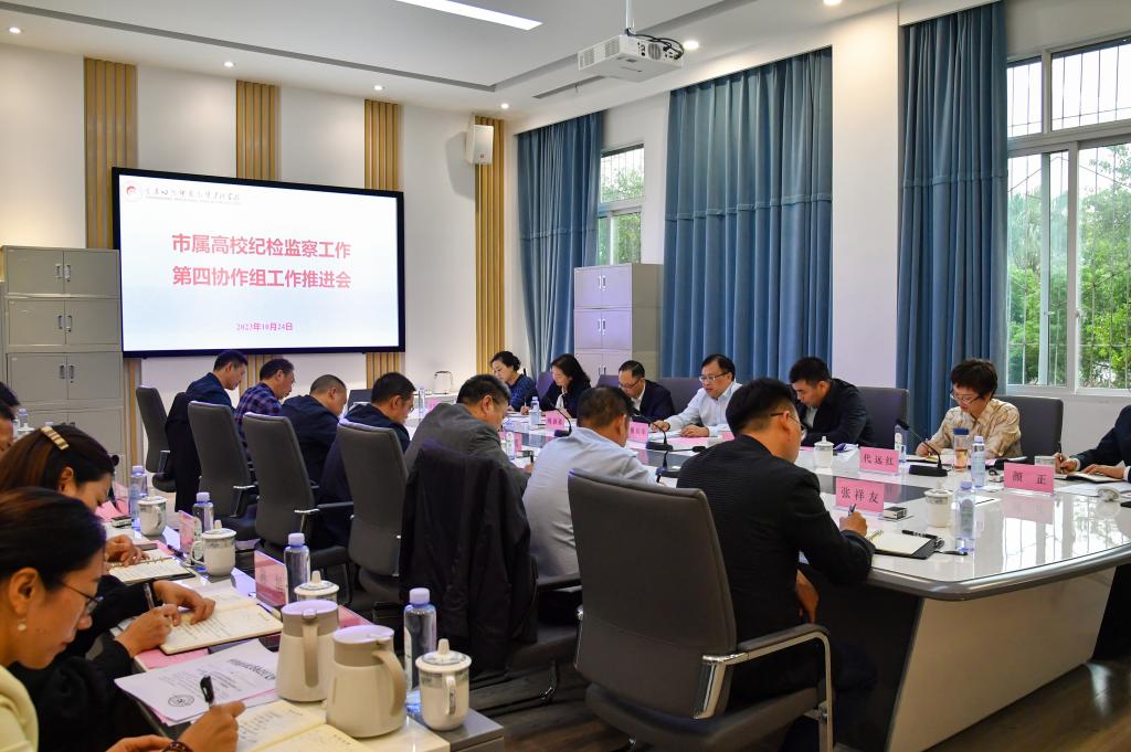 10月24日下午,重庆市属高校纪检监察工作第四协作组在我校塘坊校区博学楼101会议室召开工作推进会。来自西南政法大学、四川外国语大学、重庆工业职业技术学院、重庆旅游职业学院和万州片区公办高校等9所高校的纪委书记、纪委副书记参加会议。市纪委监委驻市教委纪检监察组组长傅兵军、副组长刘鑫出席会议。